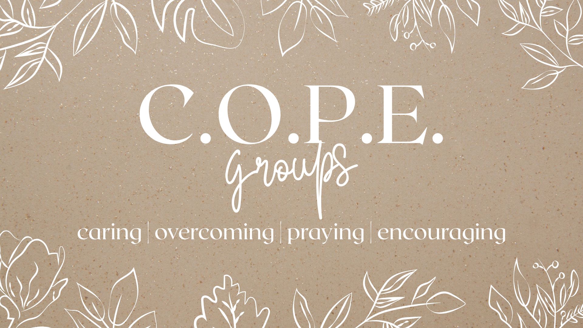 These are confidential, ongoing, open groups meeting at different days and times throughout the week. The C.O.P.E. groups currently offered are for moms of prodigals, widows, and women who have experienced/are experiencing infertility and/or infant loss.